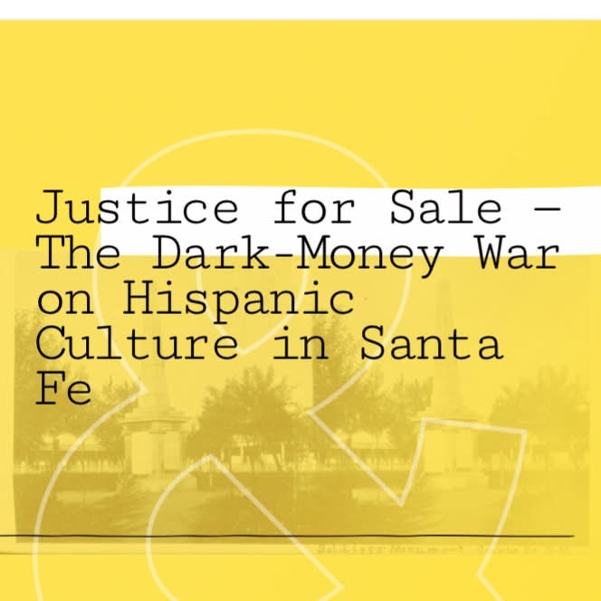 Moneyed power is attempting to quietly rewrite Santa Fe’s story, and I unpack a great, big bunch of their shadowy shenanigans in my latest investigative article, “Justice for Sale — The Dark-Money War on Hispanic Culture in Santa Fe," which (finally) found a home with Estancia News.