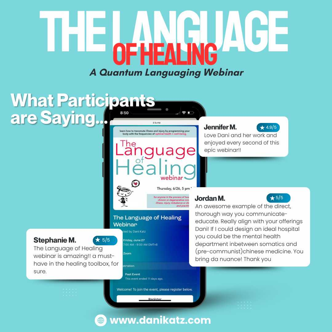 #LanguageOfHealing, #QuantumLanguaging, #HealingWords, #EnergeticAlchemy, #ConsciousCommunication, #MindBodyConnection, #SelfHealing, #SovereignLiving, #VibrationalMedicine, #DaniKatz, #AlternativeHealing, #NaturalHealing